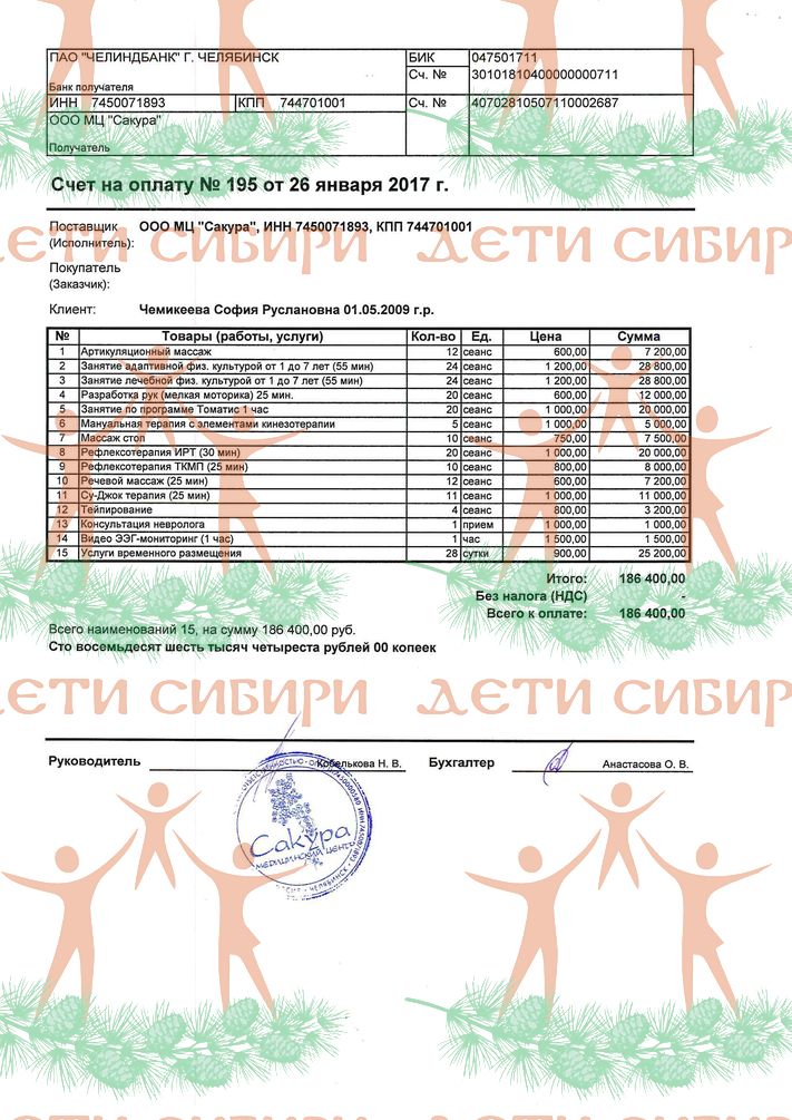 Благотворительный фонд «Дети Сибири» » Документы Чемикеева Соня